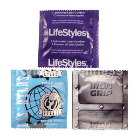 Select from a number of condom types, including different sizes, textures, and sensitivity.
